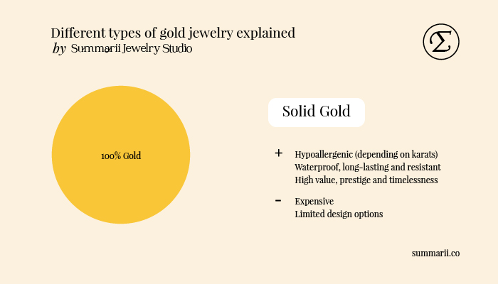 Solid gold jewelry is exactly what it sounds like—jewelry made entirely (or mostly) of real gold, not just coated on the surface.